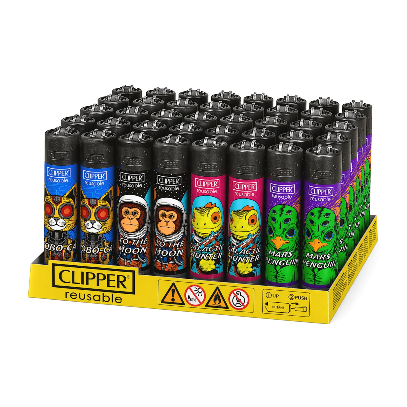 De aanstekers van Clipper zijn robuuste en stevige aanstekers van topkwaliteit. Je kunt ze niet alleen hervullen, ook het vuursteentje is vervangbaar. De vlam van een Clipper wordt groter als je de aansteker schuin houdt. Met een Clipper Classic kun je zeer lang vooruit. Deze aanstekers worden geleverd in een display van 48 stuks.