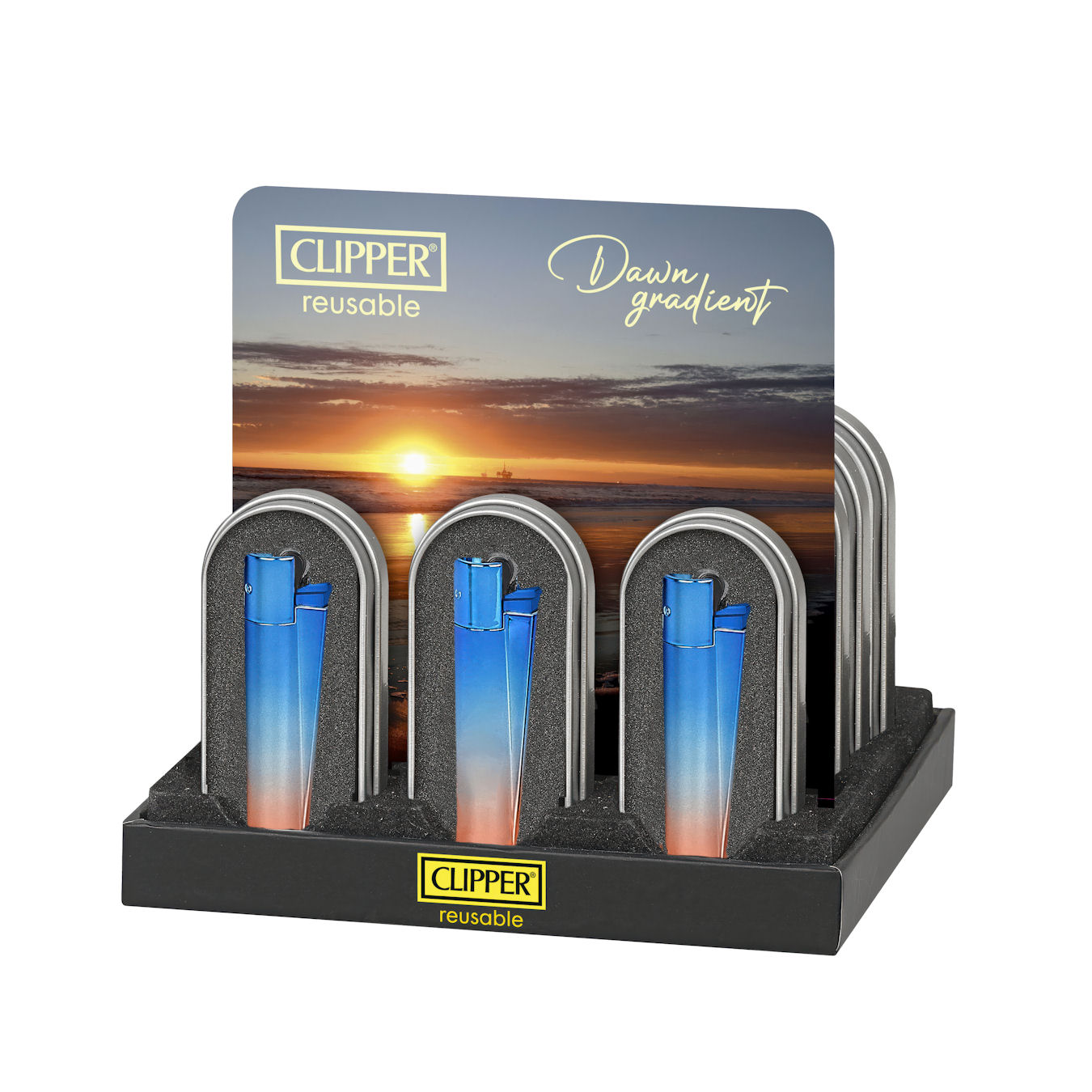 De aanstekers van Clipper zijn robuuste en stevige aanstekers van topkwaliteit. Je kunt ze niet alleen hervullen, ook het vuursteentje is vervangbaar. De vlam van een Clipper wordt groter als je de aansteker schuin houdt. Met een Clipper Classic kun je zeer lang vooruit. Deze aanstekers worden geleverd in een display van 12 stuks inclusief giftboxes. Productcode CM3S147X.